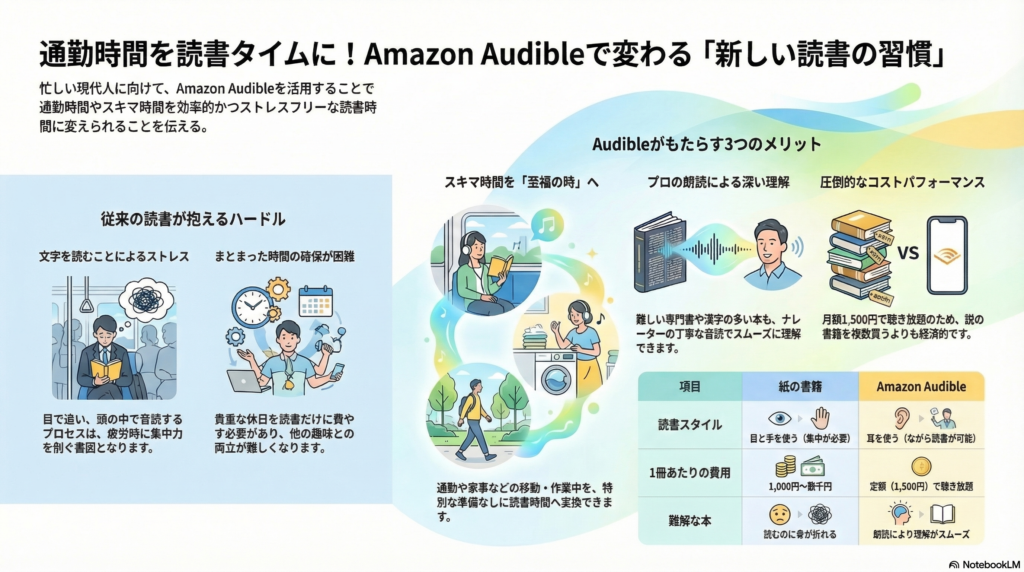 Amazon Audibleは、あなたの通勤時間を至福の読書タイムに変え、人生をより豊かにするためのツールです。