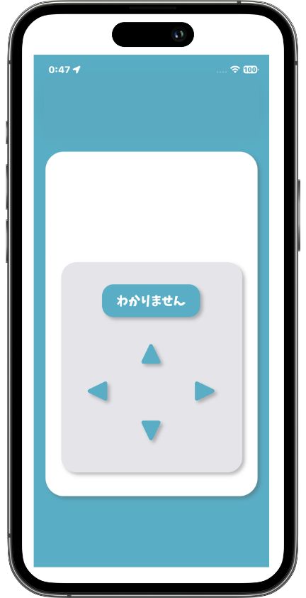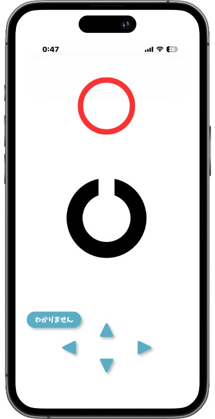 一方、古いiPhoneはコントローラとして活躍します。画面には上下左右の矢印ボタンが配置され、Bluetoothで接続された現在のiPhoneと連動。円の空いている方向に対応する矢印を押すと、正解なら「○」、不正解なら「×」が表示される仕組みです。