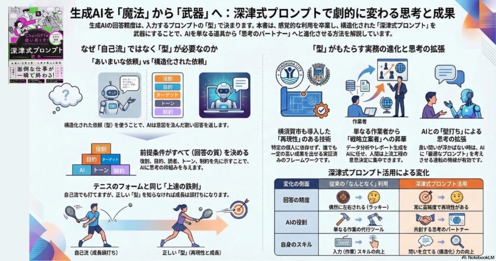 深津式プロンプトは、その「対話の質」を高めるための設計図です。
