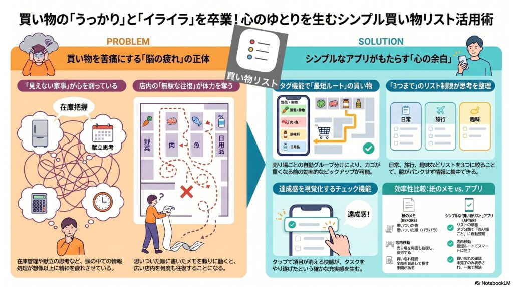 この「買い物リスト」アプリは、決して人生を劇的に変えるような派手なツールではありません。しかし、私たちの毎日に静かに、確実に効いてきます。